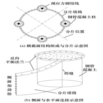 为应对风机大型化导致传统圆锥形塔筒在制造、运输和施工中的成本显著增加,构建了一种内置预应力钢绞线的分片式钢混塔筒结构。基于ABAQUS平台建立分析模型,对比传统圆锥形钢塔筒与新型塔筒在3-D湍流风场停机工况下的力学响应。研究发现:无预应力时,新型塔筒比传统塔筒的最大等效应力降低10.24%,塔顶位移减少14.89%,用钢量节省9.51%,一阶固有频率最大提升7.5%;施加预应力后,比无预应力时,等效应力降低0.36%,位移减少6%,一阶固有频率最大增加7.6%;新型塔筒的抗弯承载力较传统塔筒提高15%,加预应力后再提升6.5%;有、无预应力钢绞线的新型塔筒的屈曲性能都有明显提升,结构临近屈曲时其薄弱部位均位于塔高1/2处;合理的预应力措施有助于提升结构抗风性能。该研究通过优化塔筒结构和预应力设计,显著提升了结构强度、稳定性和抗风性能,同时降低了成本,具备工程应用潜力。