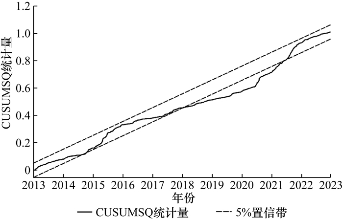 | 检验区间/年 | F | 临界值 | 是否稳定 |