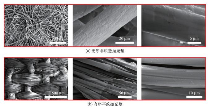 Objective: Chemical mechanical polishing (CMP) is an ultra-precision machining technology for hard and brittle materials. The technology has garnered significant attention from researchers worldwide owing to its low cost of processing equipment and relatively simple operational process. In the CMP process, the polishing pad plays a critical role. It not only serves as the medium for storing the polishing slurry and abrasive particles but also transfers the processing load. This paper presents a fluid-structure coupling analysis framework to elucidate the fiber structure of the polishing pad and the interaction mechanism between the polishing slurry and the workpiece during the polishing process. Methods: An innovative fluid-structure coupling analysis framework is proposed to investigate the interaction mechanism between the fiber structure of the polishing pad, the slurry, and the workpiece during the polishing process. Through comprehensive experimental verification and numerical modeling, the polishing efficiency differences between the ordered plain weave polishing pad and the disordered nonwoven polishing pad were systematically evaluated. To meet the ultra-precision processing requirements of fused silica materials, a green and environmentally friendly polishing slurry was specially developed. The slurry consisted of cerium oxide abrasive, hydrogen peroxide, guar gum, and deionized water. The composition of the polishing slurry and the polishing process were optimized through a single-factor test. Subsequent experiments were conducted on polishing pads with different textures (ordered plain weave fabric and disordered nonwovens) using the optimized slurry and process. The experimental procedure was further optimized through a single-factor test. Results: The experimental results showed that the surface roughness (Sa) of the nonwoven polishing pad was as low as 0.181 nm, which was significantly better than that of the plain weave pad (0.486 nm). In addition, the thickness of the subsurface damage layer caused by the nonwoven pad was reduced to 4.14 nm, approximately one-third of that of the plain weave pad (about 12.12 nm). A comparison of the surface elements of fused silica before and after polishing revealed that the polished sample had no impurity residue on the surface after cleaning. The difference in fiber structure between the two polishing pads only affected mechanical removal during the polishing process but did not influence the chemical reaction. Furthermore, the fluid-structure coupling model analysis revealed that the nonwoven polishing pad exhibited a more uniform fiber stress distribution during polishing, with the maximum stress value being only about 0.5 MPa, considerably lower than the 6 MPa observed for the plain weave pad. In addition, the stress distribution of the slurry in the system was more random and uniform, which optimized the stress transfer and diffusion efficiency throughout the overall polishing system and promoted uniform material removal. Conclusions: In conclusion, this paper highlights the advantages of the disordered nonwoven polishing system in the precision processing of fused silica from both experimental and numerical perspectives. It also provides valuable insights for the analysis, design, and manufacturing practices of complex polishing systems involving fiber aggregate polishing pads, slurry, and workpieces.