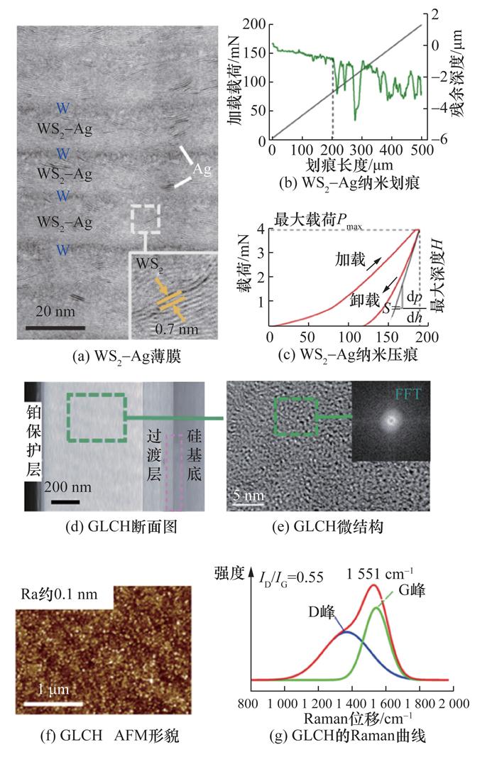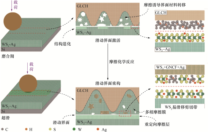近年来随着国家对火星和金星等相关星系深空探测战略的实施, 开发特殊环境如CO2气氛中的重载超滑技术具有重要的研究意义。该文以高硬度低含氢碳膜和低硬度纳米银掺杂改性二硫化物薄膜构成的异质界面摩擦副为研究对象, 探究该体系的力学特性、纳米结构和摩擦学行为。重点分析了在0~3.2 GPa宽载荷域内GLCH/WS2-Ag和SUJ2/WS2-Ag润滑系统的宏观超滑行为及影响因素。基于接触界面摩擦层的表面形貌与纳米结构表征, 揭示了滑动区域应力诱导类石墨烯纳米转移膜和WS2剪切层的形成规律, 阐释了接触界面原位形成的多相有序化摩擦膜对润滑系统超高压超滑构筑的作用机理。