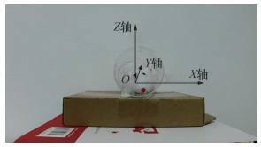 以小鼠头部特征点的质心为坐标原点,以平行于世界坐标系的XYZ方向作为小鼠头部坐标系的XYZ正方向,建立小鼠头部坐标系,如图 6所示。俯仰角、翻滚角、偏航角分别为绕着小鼠头部坐标系的XYZ轴转动的角度。小鼠左眼、右眼连线的中心点坐标为