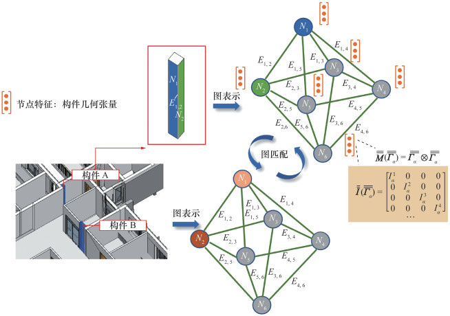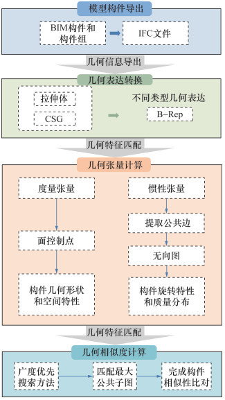 Objective: The widespread adoption of building information modeling (BIM) in construction projects has notably advanced design, coordination, and project management. However, a persistent challenge in BIM implementation lies in the efficient management of geometric information, particularly when identical or similar components are repeatedly present in a model. This leads to substantial data redundancy, increasing both storage and network transmission costs, thereby impeding the scalability and efficiency of BIM models in large-scale projects. Methods: This study proposes an approach for geometric component comparison and reuse based on geometric tensor analysis and graph matching algorithms. The method focuses on BIM models in the industry foundation class (IFC) format, leveraging the boundary representation (B-Rep) of geometric components to extract key features such as metric tensors and inertia tensors. These tensors serve as shape and spatial property descriptors, enabling accurate assessments of geometric similarity. Graphs are constructed in this process, where nodes represent the surfaces of components and edges denote the topological relationships between them. By applying graph matching techniques, this method identifies geometric similarity even when components undergo transformations such as rotation, translation, or scaling. The proposed method was validated through several experiments focused on reducing geometric redundancy and optimizing model storage. Results: In the first experiment, a complex geometric component, a window that consisted of 392 surfaces and 758 edges, was analyzed for reuse. This process reduced the IFC file size from 188 kB to 66 kB, representing a 64.9% decrease and demonstrating the effectiveness of identifying and reusing repeated geometric components in minimizing storage requirements. The second experiment applied the method to a 22-story residential building, focusing on the standard floors comprising 22 718 components. The method decreased the overall IFC model size by 90.0%, illustrating its scalability and efficiency in handling large-scale BIM models. The third experiment evaluated the time required to retrieve models of different scales, showing short retrieval times. However, these findings indicated the need for further optimization when handling large-scale models. This approach offers several advantages over traditional methods for managing geometric information in BIM. First, geometric tensor analysis ensures robust component comparison that is invariant to transformations, enabling accurate identification and reuse of components regardless of their spatial orientation. Second, the integration of graph matching algorithms provides a flexible and scalable framework for handling complex topologies and large datasets, making this method particularly suitable for high-volume construction projects. In addition to reducing redundant geometric data in BIM models, the proposed method enhanced storage efficiency and data exchange, minimized BIM model sizes, and facilitated faster data transfer while reducing the strain on network resources. These features are critical for large collaborative projects involving multiple stakeholders across different platforms. Furthermore, the method improved the maintainability of BIM models by facilitating version control and consistency checks, ensuring efficient management of model updates without duplicating existing geometric data. Conclusions: In conclusion, combining geometric tensor analysis and graph matching offers a robust solution for optimizing BIM models through geometric component reuse. This method addresses the challenge of data redundancy, delivering significant improvements in storage efficiency and network transmission. Subsequent research may focus on refining the computational aspects of the method, particularly for processing highly complex models, and explore its integration into cloud-based BIM systems to further enhance real-time collaboration and model management across multidisciplinary teams.