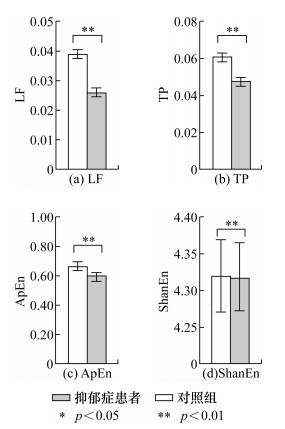 注:表中括号内数据为标准差;因HAMD-24量表需进行临床医生他评,故对照组未进行测评;抑郁症患者未做SAS量表自评。 |