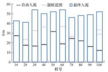 | 直径/m | 桩长/m | 入泥深度/m | 壁厚/mm | 桩重/t | 自由入泥深度/m | 溜桩长度/m | ||