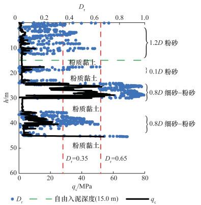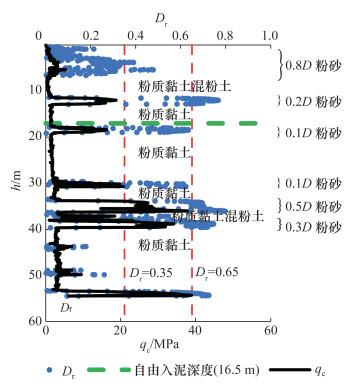 注:St为灵敏度,Φ为内摩擦角,Dr为相对密实度。 |