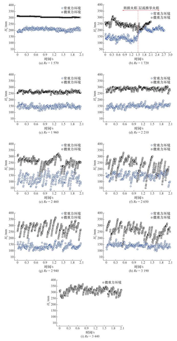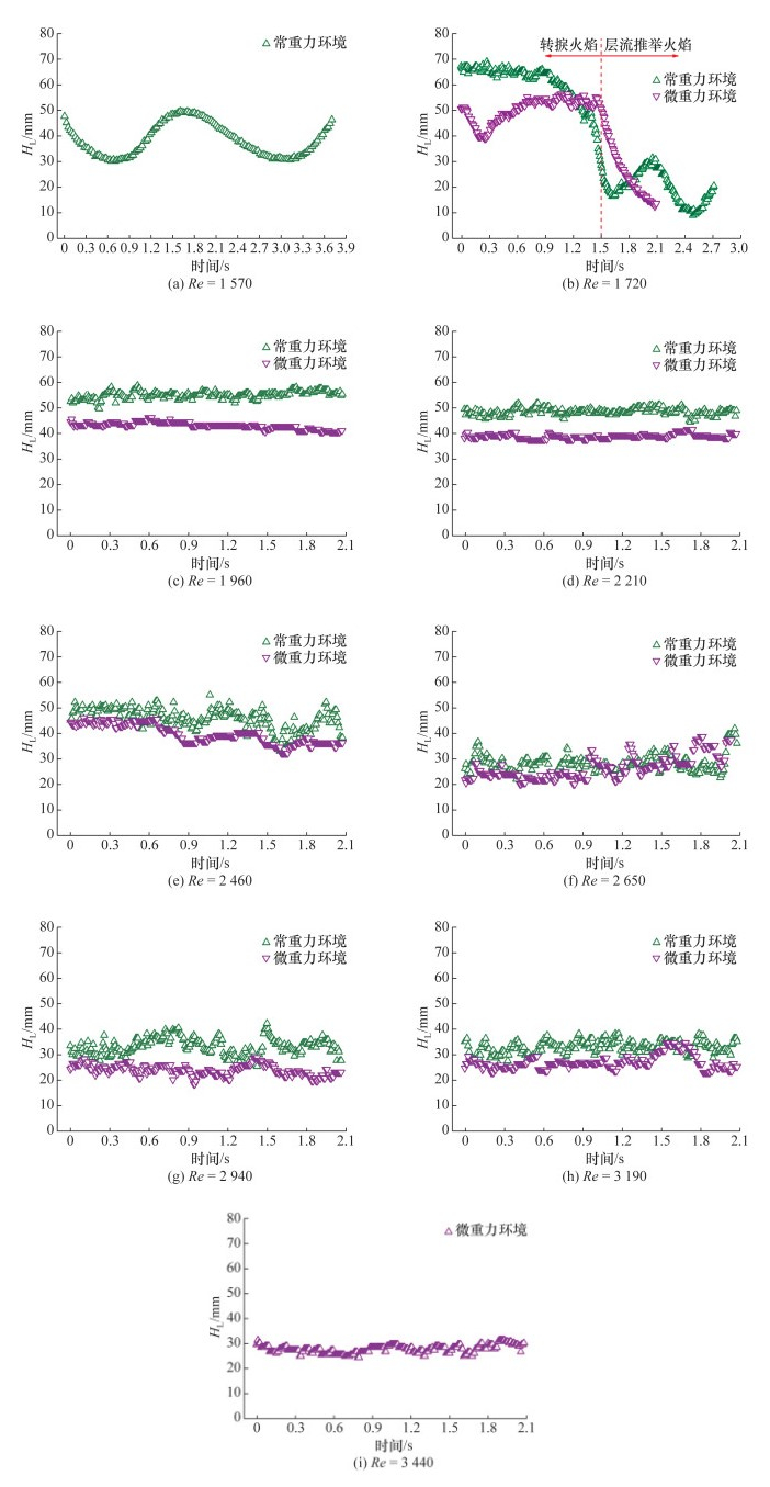 [1]。射流扩散火焰面边缘涡旋结构的运动引起火焰高度、宽度、亮度等随时间发生周期性变化的现象,称为火焰振荡或闪烁(flame flickering)现象,属于火焰不稳定性中的一种。射流火焰振荡现象的研究主要涉及燃烧器尺寸、燃料类型、压力、重力以及伴流空气速度对振荡幅度和振荡频率的影响。Chamberlin和Rose