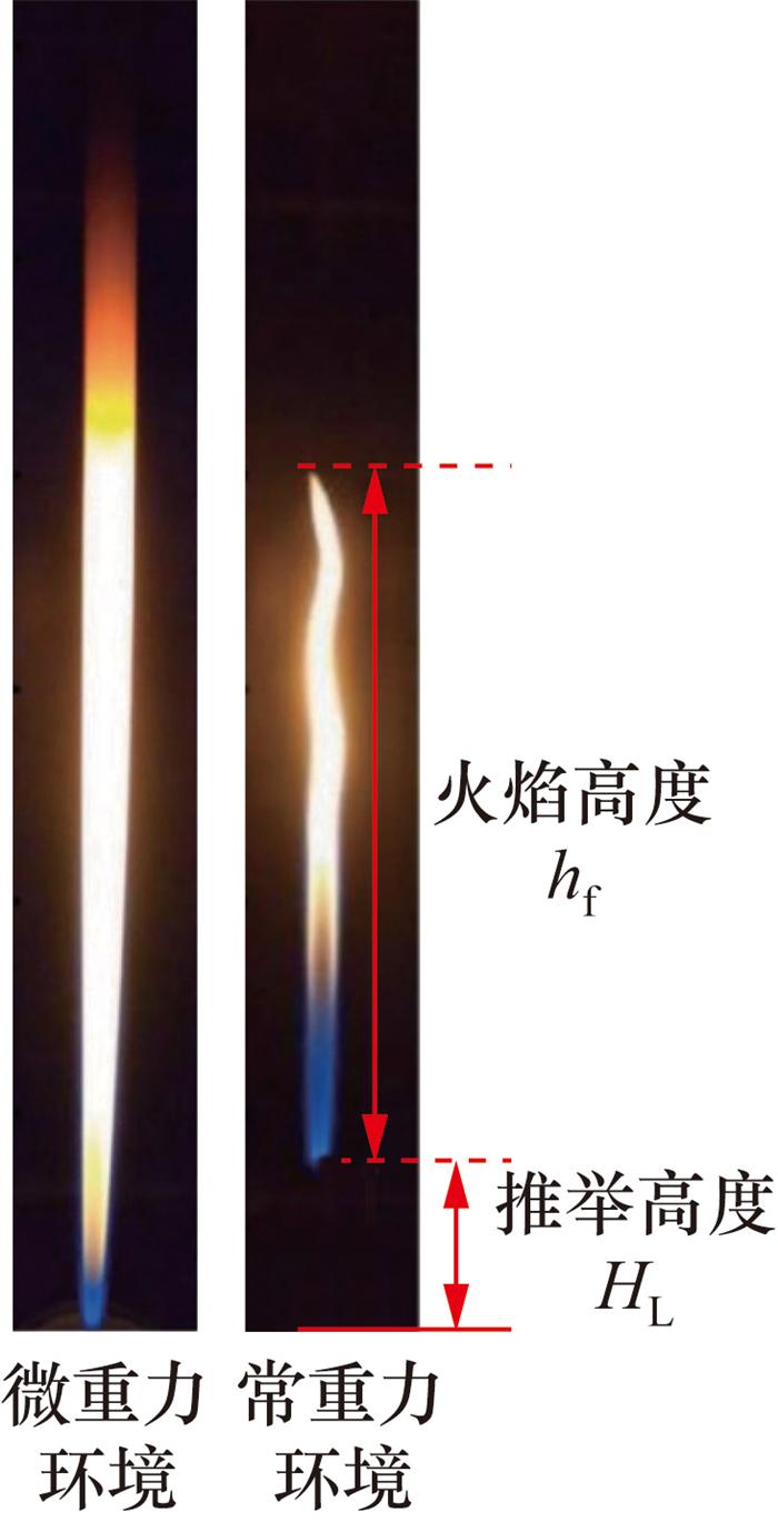 [9]通过实验考察了伴流速度对扩散火焰转捩和稳定性的影响,结果表明,较大的伴流速度对浮力效应具有抑制作用,随着伴流速度增大,中心射流对火焰形态的影响逐渐显著,火焰周期性振荡的幅度逐渐减小。