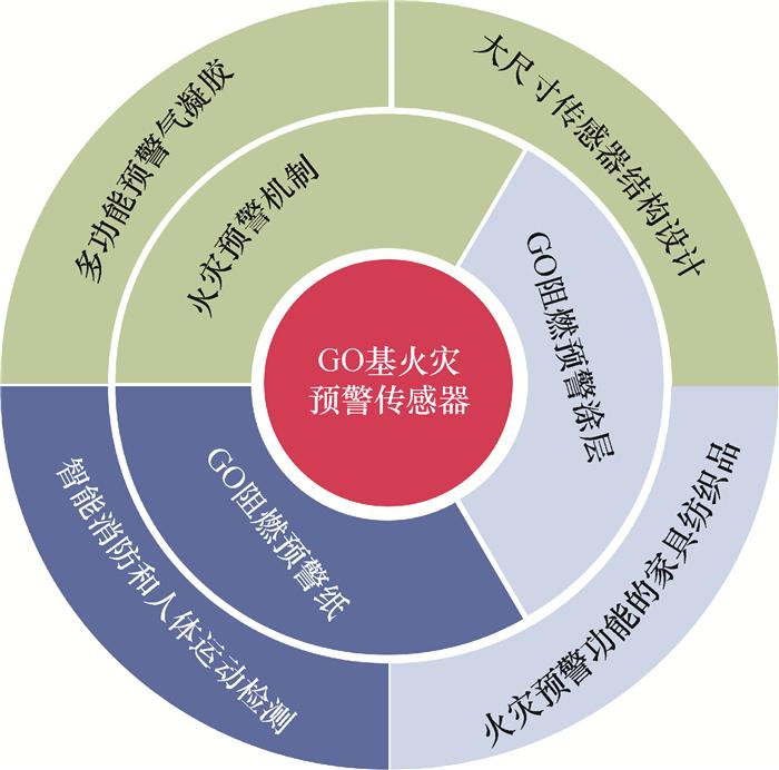 [38]采用LBL技术沉积阻燃改性的GO(FGO)和CNT,成功制备了功能化聚氨酯海绵(PUS)。PUS催化碳化的化学炭与FGO-CNT的物理炭结合形成紧凑的保护屏障,在高温下提供结构稳定性。涂层海绵在火灾中显示出2 s的快速报警时间。受LBL技术的启发,研究者正在开发结合GO和CNT的杂化材料,目的是通过这2种材料的协同作用,在机械、电学和热性能等多个方面实现提升