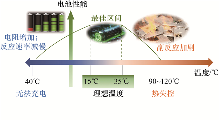 Significance: Amid the rapid development of new productivity tools, the active thermal management system of power lithium-ion batteries is facing significant challenges, such as improving charge and discharge ratios and adapting to harsh application scenarios. To maintain stable operations of the power system in the best state, the technical bottleneck of efficient and long-term heat dissipation needs to be overcome. At the same time, in the consumer market, the cost factors of engineering products, including design, materials, space volume, cooling refrigerants, and plumbing systems, need to be carefully considered. Therefore, the active thermal management system of power lithium-ion batteries, which is widely used and has great potential, needs to be systematically summarized. Progress: This paper comprehensively reviews research progress on the active thermal management of power lithium-ion batteries in recent years. First, we summarize the research status of single-phase thermal management methods, including forced air cooling, natural air cooling, immersion liquid cooling, and microchannel liquid cooling. In the context of low charge and discharge ratios and lightweight engineering, air cooling still plays an important role. The main factors affecting battery temperature include air flow rate, air flow velocity, battery layout, and flow channel design. The air cooling system has unique engineering advantages because of its low cost. With an increase in charge and discharge ratios, the effect of microchannel and immersion liquid cooling is significantly enhanced, which is beneficial in controlling the battery's temperature and temperature uniformity. Several factors, such as liquid flow rate and channel design, have notable effects on the battery's heat dissipation; however, corresponding costs also increase. Second, we discuss advanced cooling techniques based on gas/liquid two-phase flow, such as submerged boiling cooling and spray-integrated cooling. In the context of increasing demand for batteries with high charge and discharge ratios, these technologies provide efficient, flexible, and adaptable solutions to thermal management challenges. The cooling medium, the flow rate, and the nozzle arrangement all have different effects on the temperature of the battery, along with the size of the droplets. The feasibility of the comprehensive and market recovery costs to maintain profits and long-term development of the enterprise also needs to be considered. Conclusions and Prospects: Based on the literature review, this paper forecasts the progress trend of active thermal management technology from multiple application scenarios to meet the development needs of lithium electric power in sea, land, and air. We believe that the development of the active thermal management technology of the new generation of power lithium-ion batteries should fully consider practical engineering requirements, such as charge and discharge ratios and harsh application scenarios. Future research and development should focus on improving heat transfer efficiency, system integration, and intelligent control capabilities while overcoming the challenges of reliability, cost, adaptability to extreme operating conditions, and energy consumption optimization.