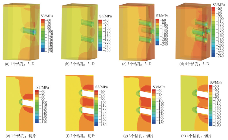 [26]研究钻孔数量和布置位置对围岩力学性能的影响,提出钻孔密度越大,卸压效果越显著的观点; 王爱文等
