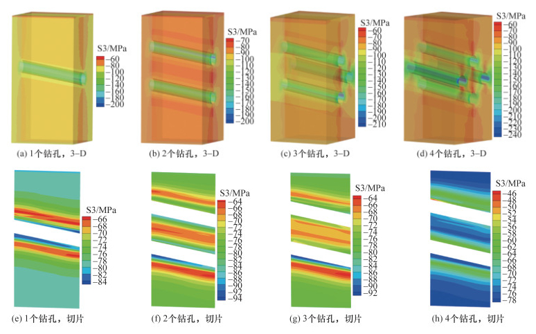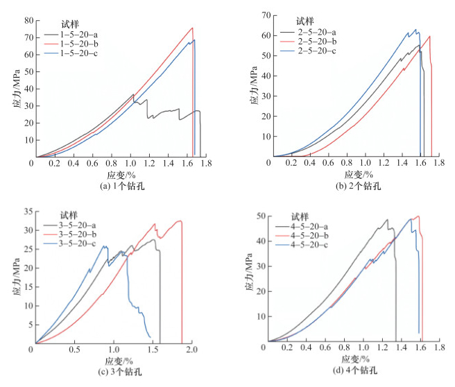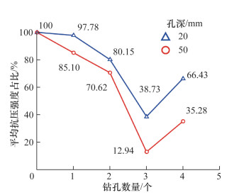 [29]认为钻孔数量的增加会导致试样强度的降低,并且钻孔的位置和角度对试样强度的弱化效果要大于钻孔数量对试样强度的弱化效果; 刘加柱等