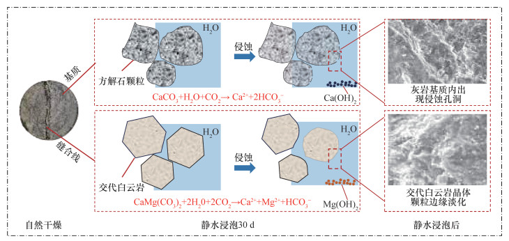 3 浸水后灰岩缝合线微细观结构变化特征