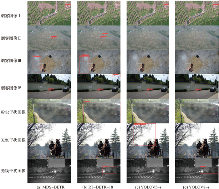 Objective: Image- based smoke detection is a vital component of early fire warning systems. However, existing methods face considerable challenges in reliability when applied to environments with complex backgrounds, high noise levels, and low image contrast. In particular, during the early stages of a fire, smoke often appears small in size, low in density, blurred in shape, and irregular in morphology, which further complicates detection. To address these challenges, this study proposes a smoke detection method that integrates spatial perception and saliency modeling. The aim is to improve the robustness, adaptability, and accuracy of smoke detection systems, providing highly reliable and effective solutions for real-world fire surveillance across diverse environments. Methods: The proposed method consists of three key components: the multi-kernel parallel convolution module (MKPCM), dynamic histogram axial interaction module (DHAIM), and spatial decay residual block (SDRB). The MKPCM employs a parallel architecture with convolution kernels of varying sizes, enabling the network to capture features across multiple spatial scales simultaneously. This design allows for an effective representation of the variable dispersion scales of smoke. The embedded context anchor mechanism further refines this process by assigning differentiated spatial weights, enhancing the focus on relevant visual regions while suppressing background noise and irrelevant features. The DHAIM uses dynamic histogram-based segmentation to partition feature maps into high- and low-contrast areas, and then applies hybrid attention mechanisms tailored to each partition to improve semantic differentiation and precise extraction of subtle smoke cues in low-contrast zones. The SDRB introduces a spatial attention generation process based on Manhattan distance, where attention weights decay as spatial distance increases, to effectively reduce interference from remote pixels and improve feature consistency in regions with blurred boundaries. These components are jointly optimized in an end-to-end learning framework to enhance the model's sensitivity to complex spatial patterns and ambiguous edge transitions of smoke plumes. Results: To evaluate the effectiveness of the proposed method, a multi-scene smoke detection dataset is constructed, encompassing various indoor and outdoor scenarios with diverse background complexities. Experimental results show that the proposed method achieves an average precision of 94.0%, outperforming the baseline real-time detection transformer model by 5.5%. The method consistently delivers high detection accuracy across different environmental conditions and maintains strong robustness against low contrast, occlusion, and scale variation. Ablation studies confirm the individual and combined contributions of MKPCM, DHAIM, and SDRB to enhancing performance metrics such as precision, recall, and F1 score. In addition, the method demonstrates efficient inference and computational performance, making it highly suitable for real-time deployment in intelligent surveillance, early fire warning systems, and automated safety platforms. Conclusions: This study presents a robust and efficient smoke detection method that integrates multi-scale spatial perception and contrast-adaptive saliency modeling. The experimental findings validate the method's ability to address key challenges in early fire smoke detection, especially in visually complex environments. With its strong detection performance and practical adaptability, the proposed method holds significant potential for integration into real-world fire prevention infrastructures, thereby enhancing early warning capabilities and contributing to improved public safety outcomes and emergency responsiveness.