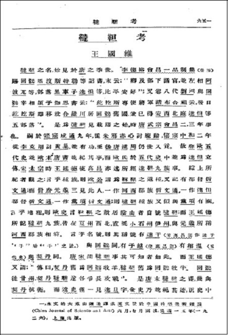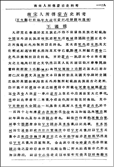 维于1925年起任教于清华国学院,并分别在1925年第1期、1926年第1期、1927年第1期《清华学报》发文3篇——《水经注跋尾》《鞑靼考》《南宋人所传蒙古史料考》。