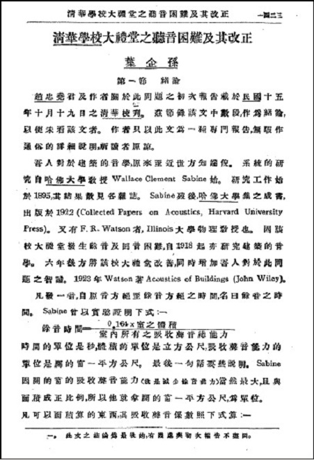 l 叶企孙《清华学报》发文,开创我国建筑声学之先河
