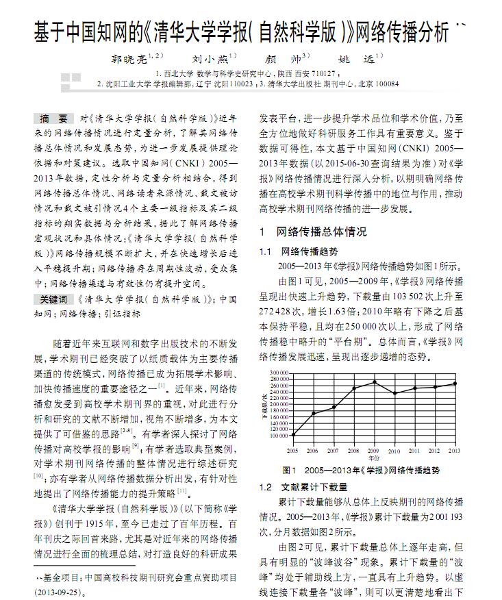 基于中国知网的《清华大学学报(自然科学版)》网络传播分析