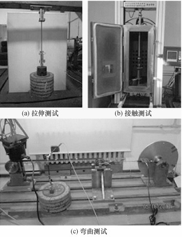 为建立FEAD系统动力学模型,需皮带的多种参数。为此,本文针对所研究系统的皮带进行了4项试验,即拉伸刚度和阻尼的测试、弯曲刚度和阻尼的测试、接触刚度和阻尼的测试以及动摩擦系数的测试。图1所示为前面3项测试的实物图。上述测试的细节可参见Cepon的研究[2, 3, 4, 5, 6, 7, 8, 9, 10, 11, 12, 13, 14]。