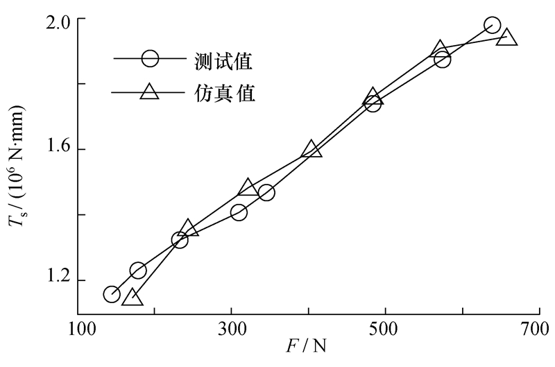 图10为实测阻力矩和相同条件下仿真结果的对比。可见,不同带张力下阻力矩的仿真与测试结果非常接近,相对误差几何均值仅为4.4%。这进一步验证了本文所建立模型的准确性,并说明阻力矩计算方法正确。