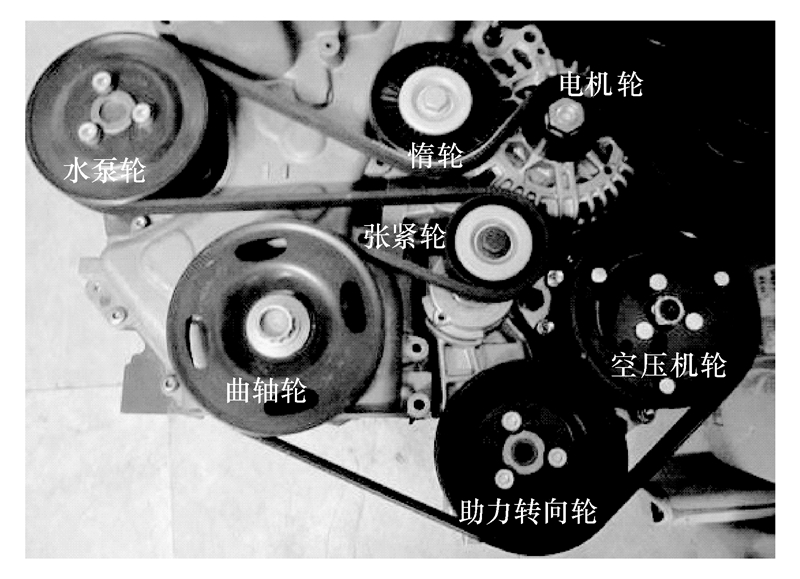 3.1 对象系统及其参数图2所示为所研究的FEAD系统,匹配1.6 L发动机。发动机怠速转速为800 r/min、 最高转速为3×103 r/min。