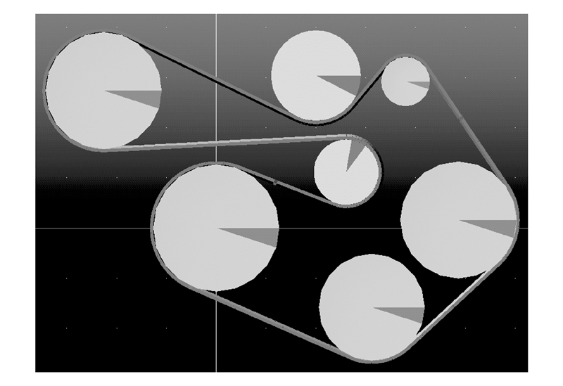 该系统各带轮及张紧器参数见表1和2,皮带参数见表3。