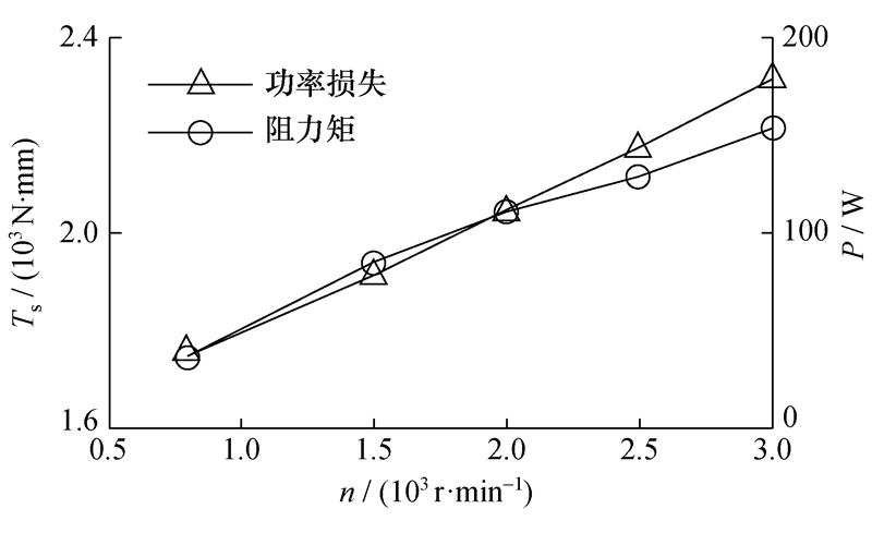 | 图 5 不同转速下系统的阻力矩与功率损失 |