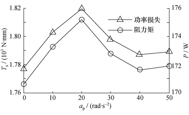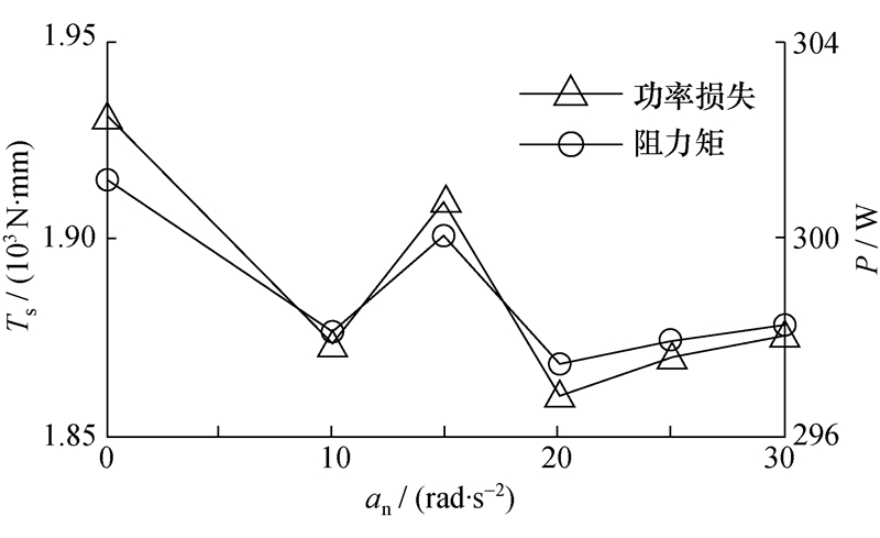 | 图 6 不同加速度下系统的阻力矩和功率损失 |