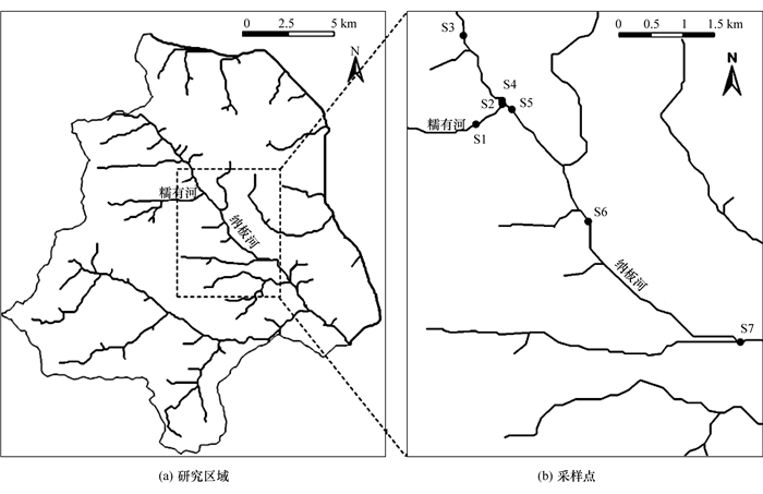 2012年10月,对纳板河主流及其支流糯有河共7个断面进行了野外测量和底栖动物采样(图 1)。其中,采样点S1和S2位于支流糯有河上,采样点S3—S7位于主流纳板河上。采样点海拔在600~800 m之间,各采样点环境要素见表 1。表中橡胶林种植强度为控制流域内橡胶林种植面积比例。