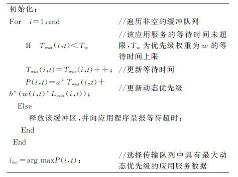 综合考虑应用层服务队列中各服务数据的紧急程度、应用服务的即时等待时间和各服务数据包的相对通信传输效率,定义缓冲队列中数据包在时刻t的动态优先级为