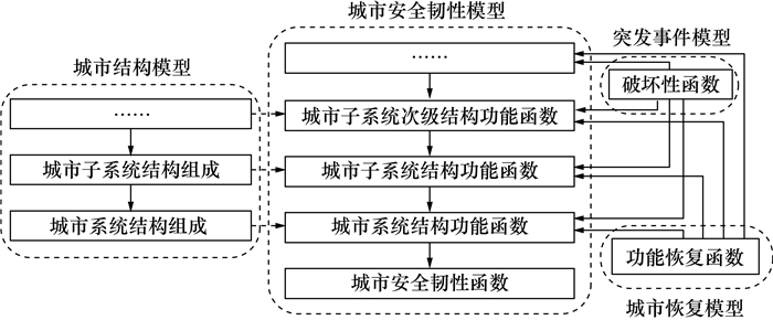 上述讨论涉及城市系统、城市子系统、城市子系统次级结构3个层次,类似,还可以对更次级结构进行讨论,定义其结构组成、结构功能函数、破坏性函数、功能恢复函数等。