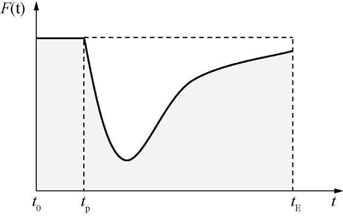 此城市安全韧性函数的物理意义为图 2中阴影部分面积占矩形面积的比例,tE为所选取的研究时段的最终时刻。