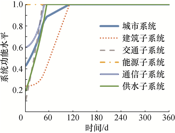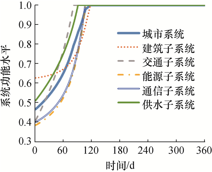 同时应注意,城市系统功能恢复情况取决于各城市子系统的功能水平,因而有