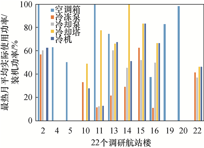 | 图 7 航站楼空调系统各项设备最热月实际使用率(无数据项是因为该航站楼未能提供设备情况) |