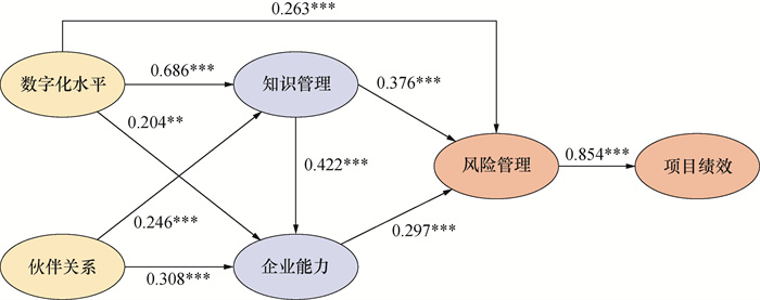 Objective: In the past years, the Chinese government has promoted the implementation of clean energy projects to accelerate the transition to green and low-carbon energy in accordance with its "Dual Carbon" target. Clean energy projects involve complex technical, socioeconomic, and environmental risks that cover all stages of engineering, procurement, construction, and operation. Thus, enhancing risk management is essential for effectively mitigating various risks and improving project performance. Studies on the risk management of clean energy projects often focus on specific perspectives and lack systematic investigations of related management issues of clean energy projects. Given the importance of stakeholder collaboration and the application of digital technology in risk management for clean energy projects, this study constructs and empirically validates a conceptual risk management model from the dual perspectives of digitalization and partnering. Methods: A mixed-method design was adopted, combining qualitative and quantitative approaches to conduct an empirical investigation. To collect quantitative data, a risk management survey questionnaire for clean energy projects was designed based on a literature review and expert interviews and distributed to management and technical personnel from various clean energy projects. Qualitative data were then gathered through expert interviews, field studies, and the collection of project materials, including digital management materials, engineering contracts, risk management cases, and risk management documents. This study also employed structural equation modeling to verify the relationships between variables in the risk management impact relationship model, including knowledge management, project digitization, partnering, participant capability, project performance, and risk management. The questionnaire survey results were analyzed to assess the current state of various management factors, thus providing insights into clean energy project management and identifying key risk management factors. Results: The results obtained after validating the conceptual risk management impact relationship model reveal that project digitization can directly influence risk management and can also indirectly enhance risk management by promoting knowledge management and improving participant capability. Furthermore, partnering can improve risk management by strengthening enterprise capabilities and facilitating knowledge management. Finally, risk management has a significant positive effect on project performance. Conclusions: This study proposes and validates a risk management impact relationship model for clean energy projects and reveals the mechanisms influencing risk management from the perspectives of digitization and partnering. The findings indicate that project digitization, partnering, knowledge management, participant capability, and risk management collectively have a significant impact on project performance. Furthermore, this study establishes a measurement indicator system for factors related to clean energy project risk management, facilitating systematic analysis of the current status, obstacles, and causes of these factors. The outcomes of our industry survey also reveal key aspects that should be prioritized in current risk management efforts. From our findings, several risk management strategies for clean energy projects are proposed, including the establishment of a systematic risk management system to strengthen comprehensive risk management, acceleration of the digital transformation of projects to enhance intelligent risk management, improvement of the partnering among project participants to promote collaborative risk management, implementation of a comprehensive knowledge management system to create a learning organization, and enhancement of participant capability to continuously improve project risk management.