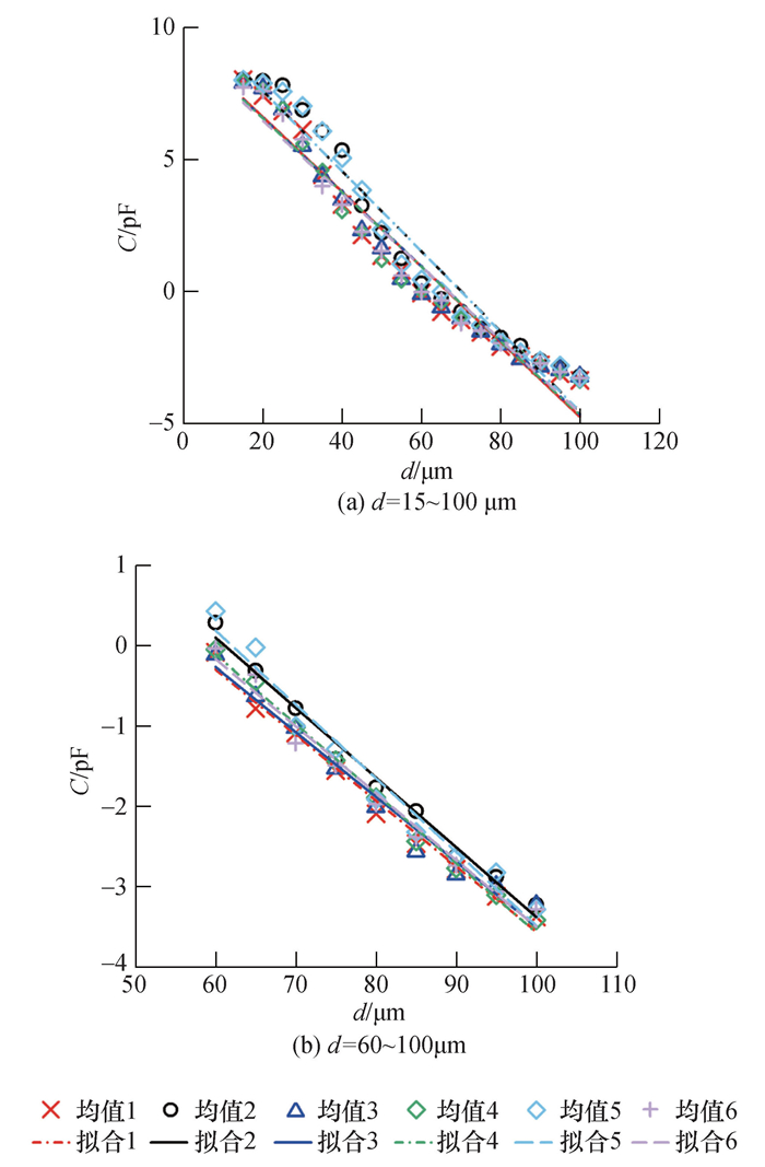 | 拟合斜率/ (pF·μm-1) | -0.081 8 | -0.080 9 | -0.086 7 | -0.091 9 | -0.083 4 |