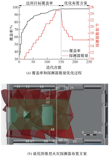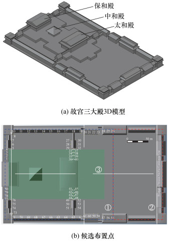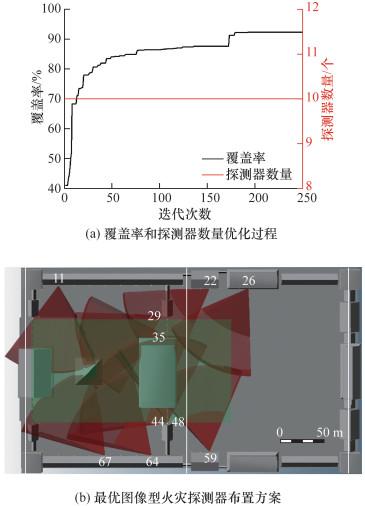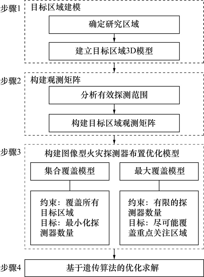 Objective: Most historic buildings in China wood or brick-wood structures; consequently, they have low fire resistance ratings and large fire loading values. Furthermore, firefighting problems associated with these buildings include high building density, insufficient fire separation distances, and narrow fire passages; thus, historical buildings face a high risk of damage owing to fire. Therefore, to prevent and control fires in historical buildings, exploring efficient early fire detection and alarm systems for these buildings is necessary. Image fire detectors enable rapid identification of fires and provide the location of fires; thus, they are used in early fire detection and alarm systems for historic buildings. However, there is a lack of study that accurately calculate the coverage and evaluated the placement of image fire detectors. Currently, the placement of outdoor image fire detectors depends on semiquantitative approaches such as engineers' experiences and existing regulations. Methods: Consequently, this study proposes a placement optimization methodology for outdoor image fire detectors in historical buildings based on the set covering and maximum covering models. First, a three-dimensional model of the target area is constructed by integrating the structural information of historical buildings and mesh division. Second, the field of view of an image fire detector is determined based on its models and specifications to analyze its viewshed; subsequently, a set of candidate detector positions is constructed using the selection rule that selects more important areas and less occluded areas, thus providing support for the reasonable placement of image fire detectors. Furthermore, the extent of coverage of the target area grid by the candidate detectors is determined by constructing a binary observation matrix that maps the position and direction of image fire detectors in the target area. Third, considering the optimization of the cost and coverage of image fire detectors as the goal, a mathematical model for the placement optimization of image fire detectors is developed based on the set covering model and maximum covering model. Finally, based on the genetic algorithm, the optimal placement scheme of image fire detectors is obtained using the previously constructed placement optimization model. Results: To demonstrate the feasibility and effectiveness of the proposed methodology, this study considers the joint area composed of the Hall of Supreme Harmony, Hall of Central Harmony, and Hall of Preserving Harmony of The Imperial Palace as a case study. Under the given target area coverage and predetermined cost, the optimal placement plan of image fire detectors is obtained, i.e., {11, 13, 16, 20, 23, 25, 33, 35, 48, 55, 58, 60, 62, 64, 67, 68} and {11, 22, 26, 29, 35, 44, 48, 59, 64, 67}. In addition, the joint area coverage reached 98.17% and 92.41%, respectively. Conclusions: Compared with the existing semiquantitative approaches to placing image fire detectors, the proposed methodology simplifies several manual calculation processes and can meet different requirements for cost and coverage within the detection area, thus optimizing the placement of image fire detectors. In addition, this methodology can quickly and accurately obtain the position and direction of the detector, which can be used for installing and calibrating outdoor image fire detectors in historical buildings. Thus, the proposed methodology can be implemented in the construction of early fire detection and alarm system in historical buildings to prevent massive economic and cultural losses owing to fire damage.