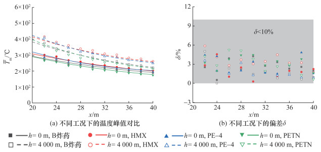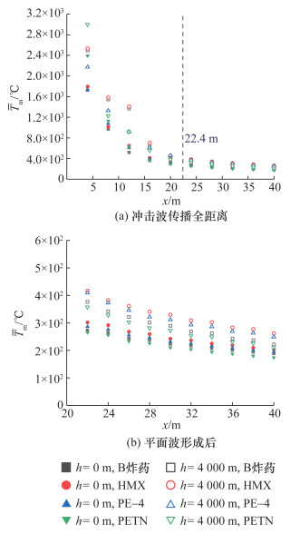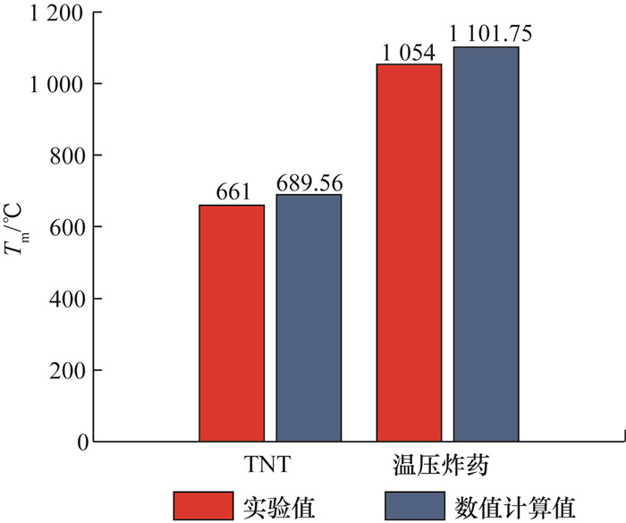 [13]开展了温压炸药与TNT在复杂坑道内部的爆炸试验,通过比较二者的冲击波和热效应参数,发现温压炸药的冲击波超压峰值、比冲量和热响应温度均显著高于TNT炸药,有明显的二次燃烧现象。王洪海等