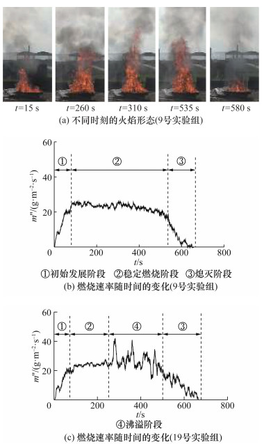 D为30 cm的油池中开展了航空煤油池火实验,关注了稳态和瞬态条件下的燃烧速率,发现稳态燃烧速率的大小与瞬态的峰值保持一致且与Blinov的数据吻合