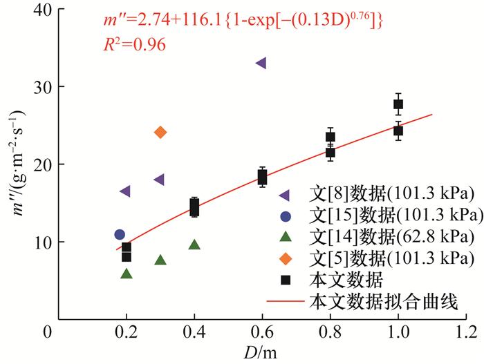 [5]收集整理了其他文献中航空煤油等燃料油池火的实验数据,进一步得到