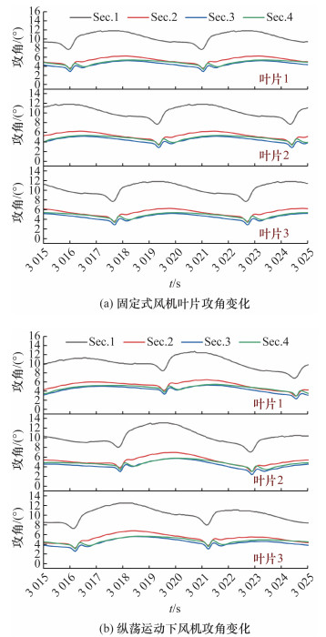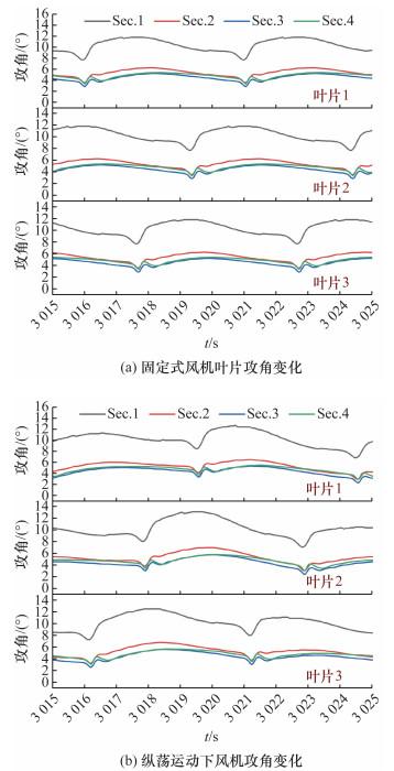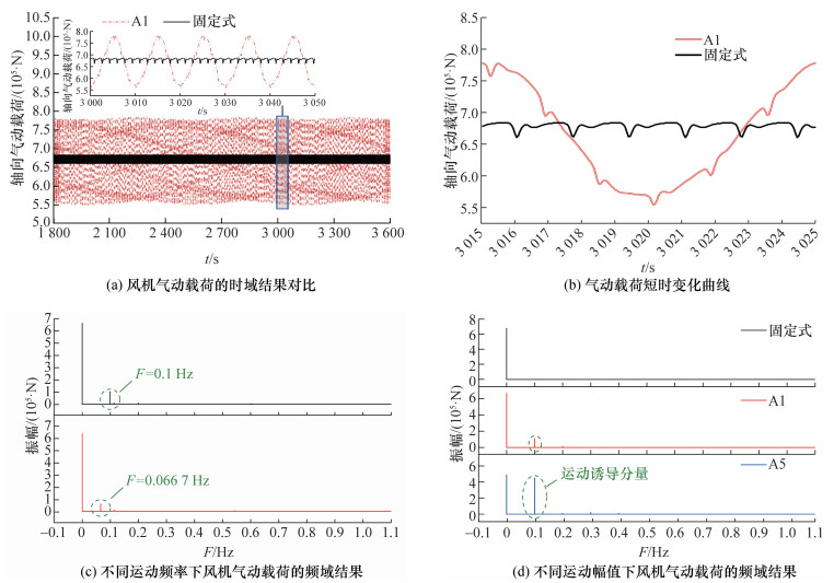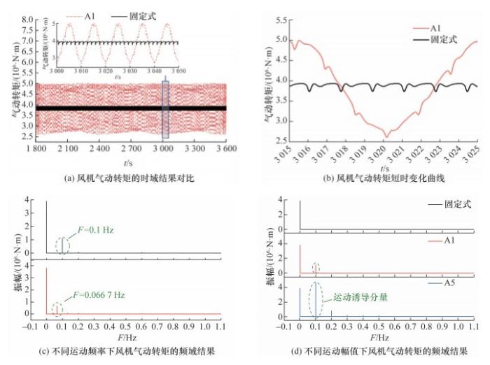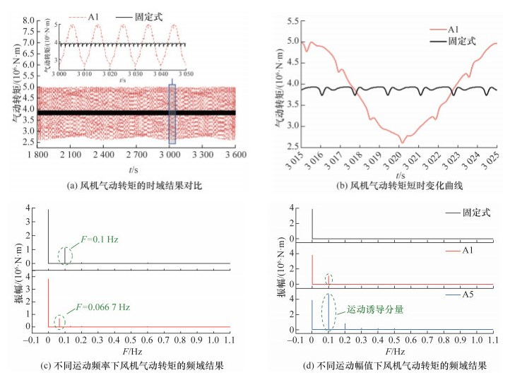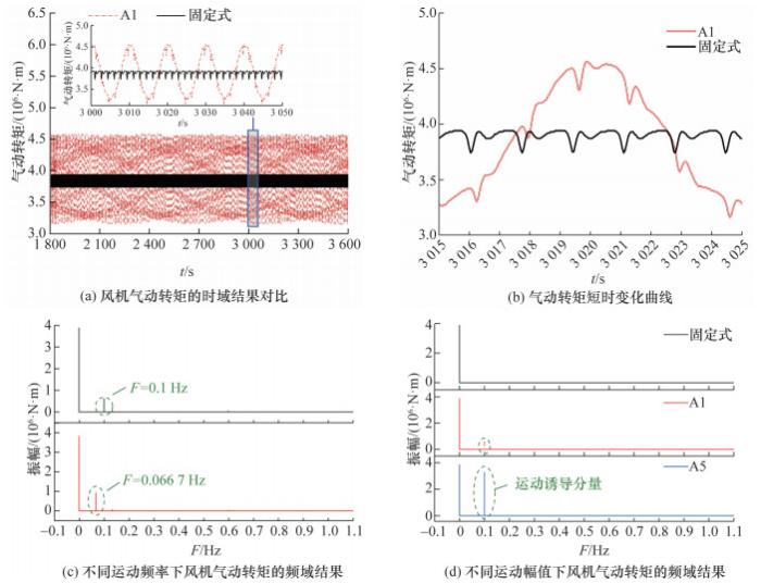 [9]使用非定常叶素动量理论方法分析了不同运动幅值下的FOWT气动性能,通过计算得到六自由度平台推力、扭矩和功率的时域结果,总结六自由度平台运动下FOWT气动性能的变化规律。黄扬等