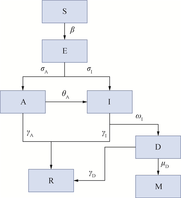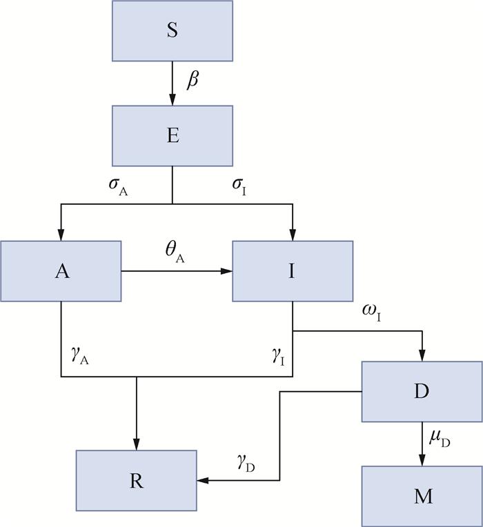 | γAx | 0.07 | SARS-CoV-2无症状感染者平均自愈时间约为7~14 d,γAx=1/(无症状感染者平均自愈时间/d),取0.07 |