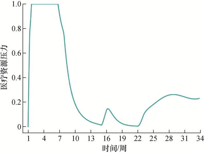 | βx | 0.25 | 病毒性呼吸道传染病的基本再生数为1.3~5.0,传染期为3~21 d,βx=基本再生数/(传染期/d),取0.25 |