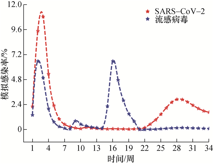 表 3 SARS-CoV-2和流感病毒耦合传播模型关键参数 |