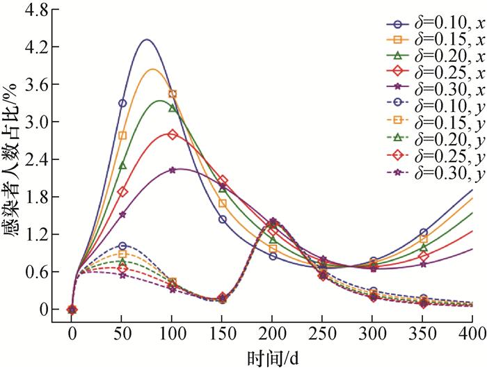 | σIx | 0.14 | SARS-CoV-2潜伏期约为1~14 d,σIx= 1/(潜伏期/d),取0.14 |