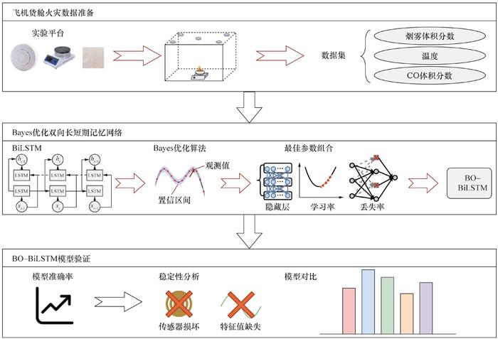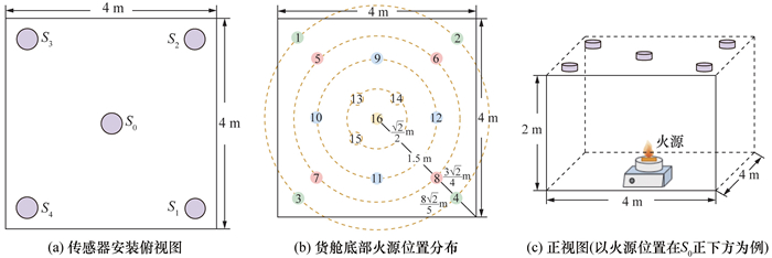 [19]将Bayes优化算法应用到CIFAR数据集上,实验结果表明,图形处理单元的误差减少了6.2%。因此,Bayes优化算法通过精确调整超参数,优化了模型的预测精度,同时显著提高了模型训练的效率和效果。上述研究显著提升了火灾模型的定位精度,但是对模拟场景及数据的分布具有较大的依赖性。然而,现有的模拟场景往往难以全面且准确地再现真实火灾场景,后者具有极端复杂性与高度动态性的特点,且涉及较多的不可控变量和相互作用机制,这在一定程度上制约了火灾模型在复杂现实场景中的鲁棒性。针对这一问题,本文搭建了飞机货舱受限空间火灾实验平台,获取真实的飞机货舱火灾参数数据集;开展了深度学习的飞机货舱火源定位方法研究,并通过多个实验验证所提方法的有效性。