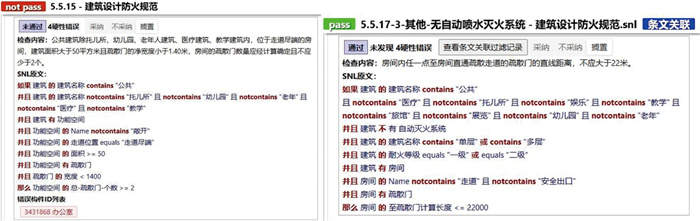 | 2 | NCC | IndicatorA1=(建规, 5.5.15, ALL, 房间) | IndicatorB1=(建规, 5.5.17-3, 疏散门距离, ALL) | ROOM |
