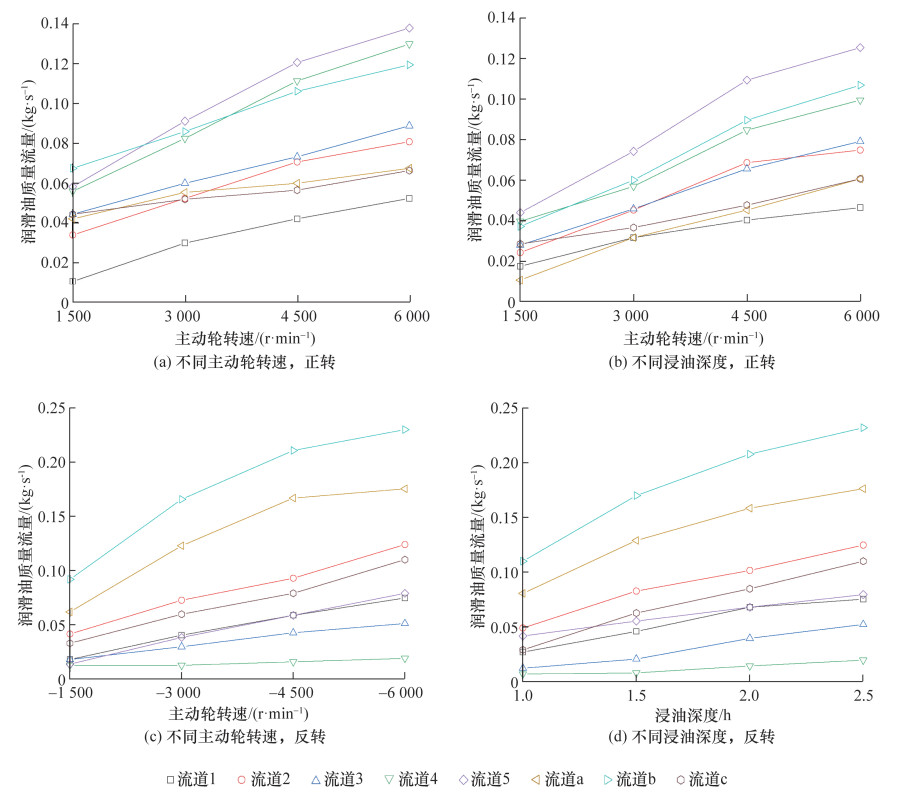 表 9 输出轴箱体侧流道内的润滑油质量流量 |