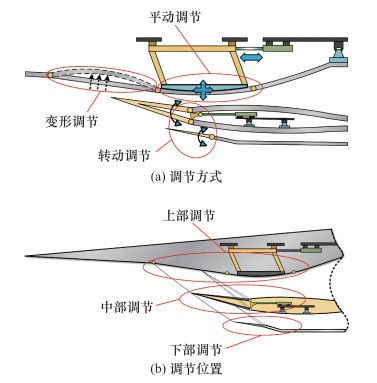 | 变形调节 | 通过压缩曲面局部变形,调节进气道外部压缩波系 | 可实现型面连续平稳变化,对作动系统依赖性更小 | 调节结构耐高温和高压要求较高,不同外部载荷条件下变形控制难度大 | |