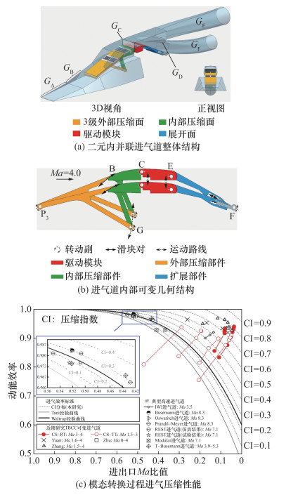 | 记忆合金调节和柔性进气道等新型调节技术 | 轴对称式和二元式进气道 | 适应性较强,局部调节更便利 | 现阶段技术成熟度较低,且与进气系统的集成性能不清晰 | |