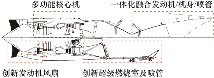 | Chimera发动机 | ![]() | 采用并联式TBCC发动机布局,基于F100发动机设计射流预冷装置,已完成TBCC发动机模态转换技术地面验证,以及发动机燃料、液压和热管理等关键子系统性能的飞行验证 | |