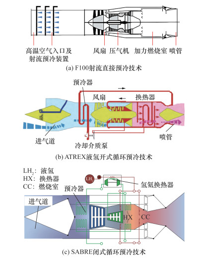 | 基于成熟机型进行技术升级 | WJ 38-15发动机、F100发动机射流直接预冷、ATREX发动机燃料直接预冷、SABRE发动机闭式循环间接预冷 | 基于涡轮发动机成熟机型进行改进,研制成本低,射流预冷技术难度相对较小 | 改进空间小,Ma提升范围有限;轻质高效低流阻预冷装置研发难度大 | |